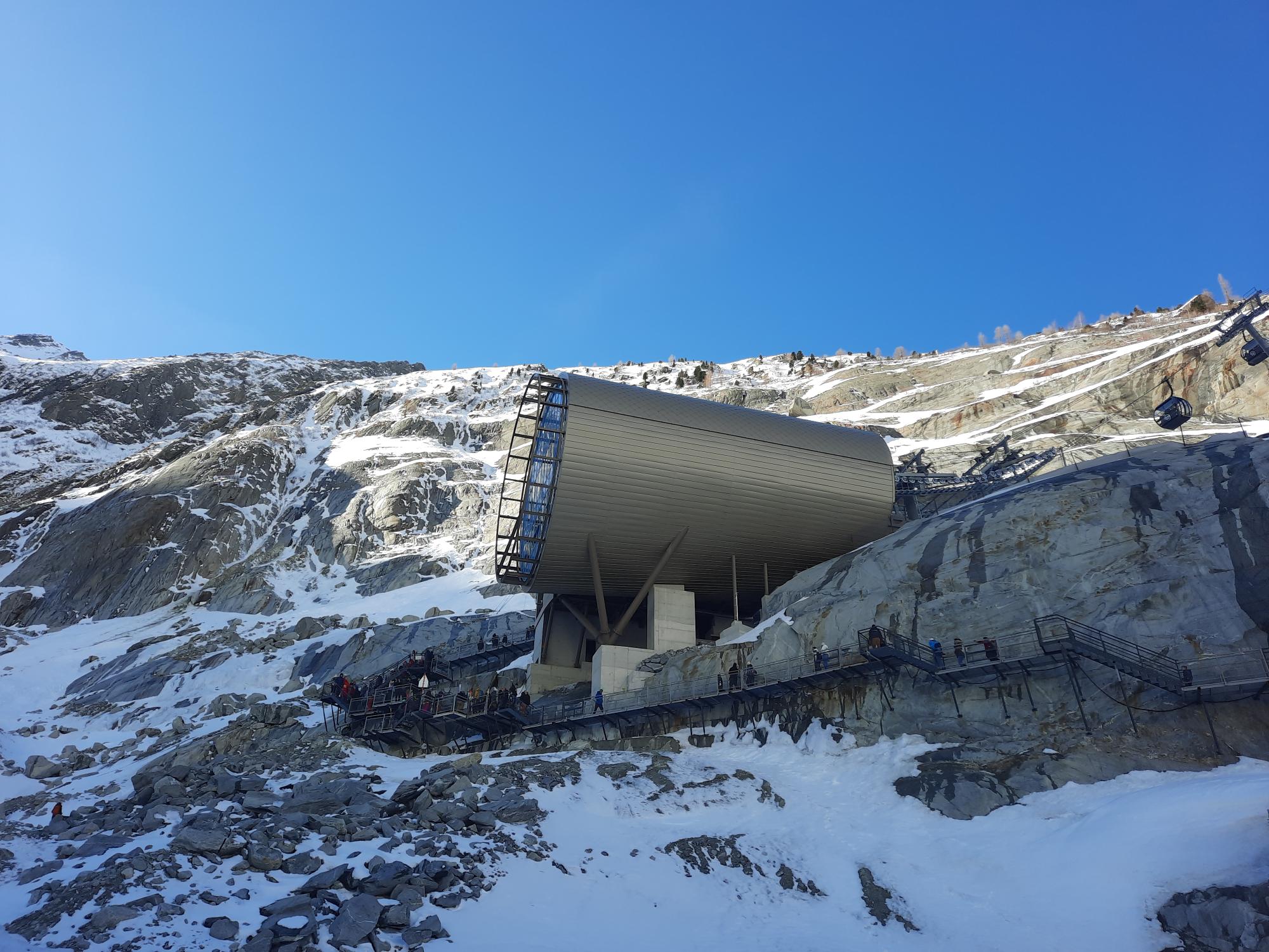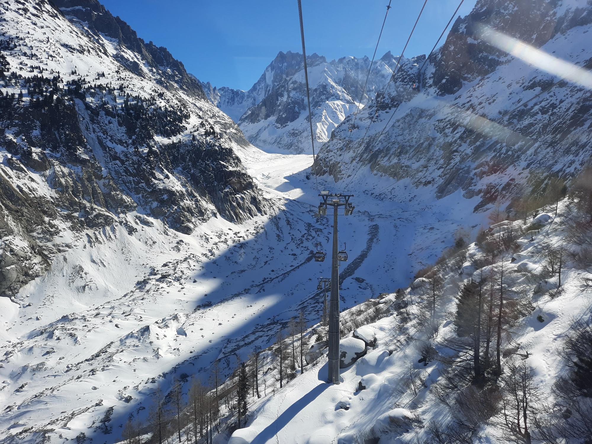 Cette télécabine permet de relier la gare du Montenvers à la mer de glace et sa grotte.