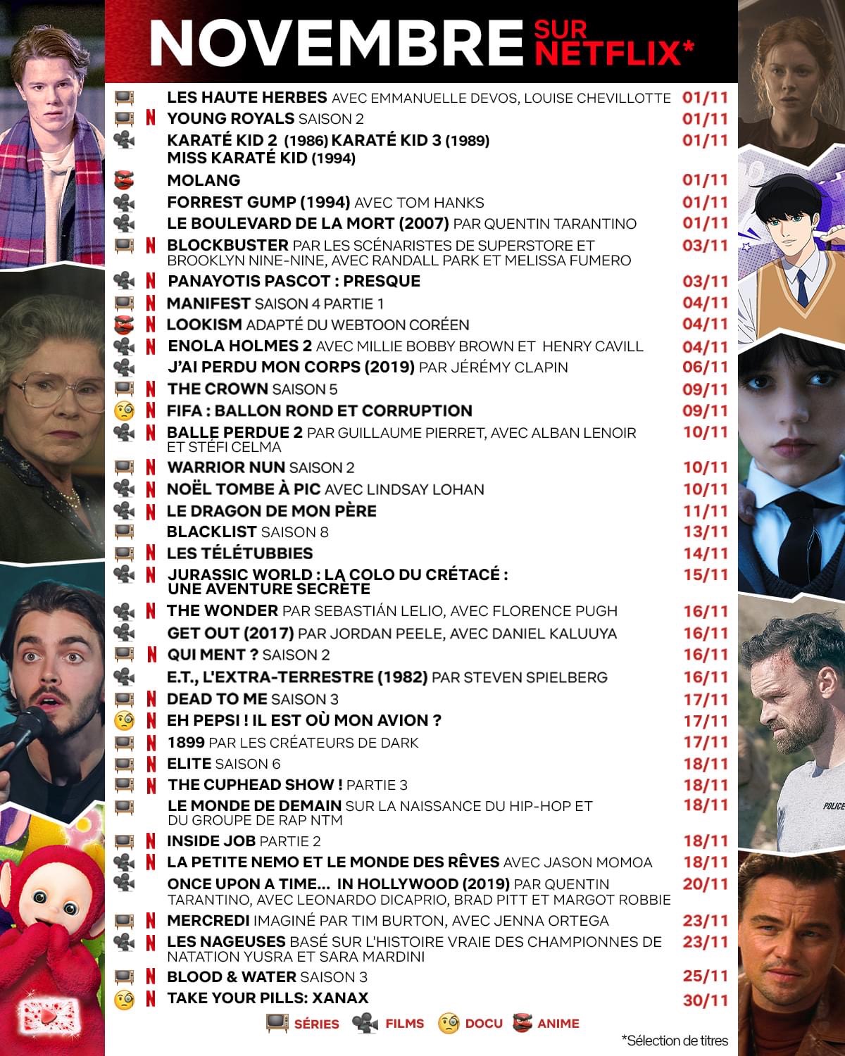 Après avoir officiellement mis en place son nouvel abonnement à petit prix comprenant de la publicité, Netflix revient à ses bonnes vieilles habitudes en publiant l'agenda du mois de novembre sur les réseaux sociaux.